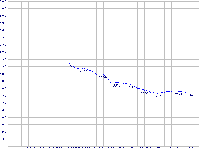 WD Caviar Blue (7200rpm,3Gb/s,16MB)の最安値推移
