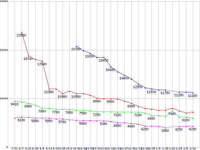 Barracuda 7200.12 (7200rpm,3Gb/s)の最安値推移