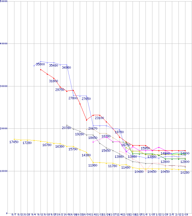 ※製品名をクリックすると個別のグラフを表示します ※点線部は販売店が確認できなかった、または調査データがないことを示します |