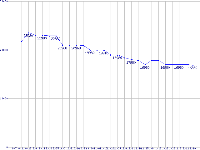 HDD/SSD主要製品(最安値1万5千円~2万円未満)の最安値推移