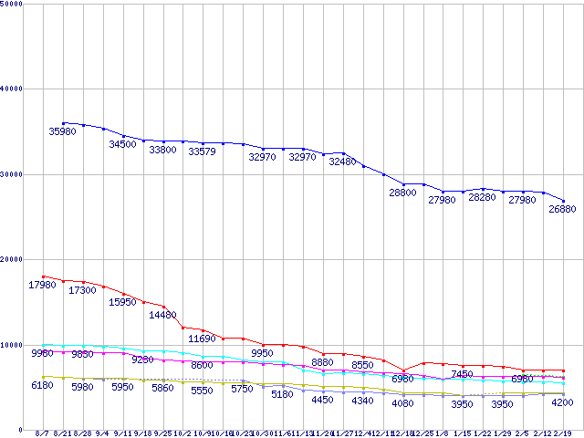 HDD 500~600GB未満の最安値推移