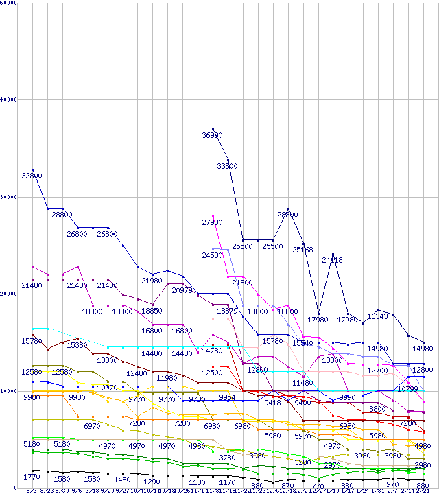 PC3-10600(DDR3-1333) DDR3 SDRAM DIMMの最安値推移