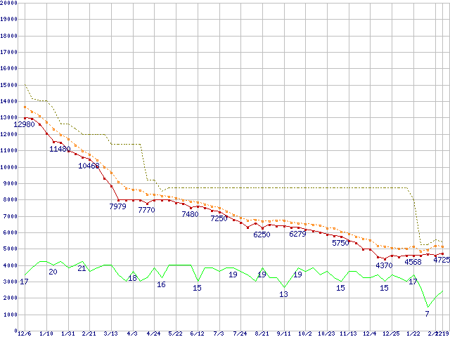 | HDP725050GLA360 (500GB,16MB)の価格推移 | | | (2007年12月6日~2009年2月19日) |