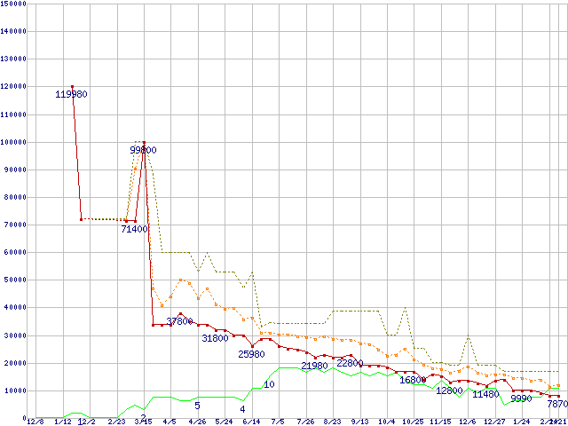 PC3-10600(DDR3-1333) DDR3 SDRAM DIMMの最安値推移