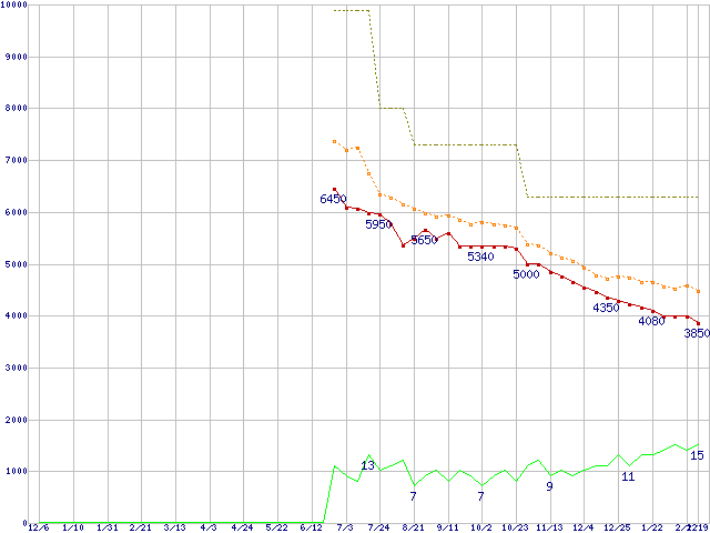 | HTS543216L9A300 (160GB,8MB)の価格推移 | | | (2007年12月6日~2009年2月19日) |