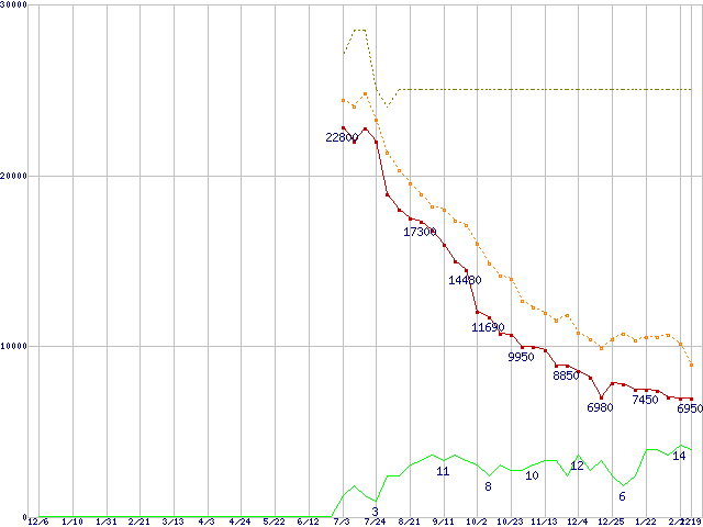 | HTS723232L9A360 (320GB,16MB)の価格推移 | | | (2007年12月6日~2009年2月19日) |