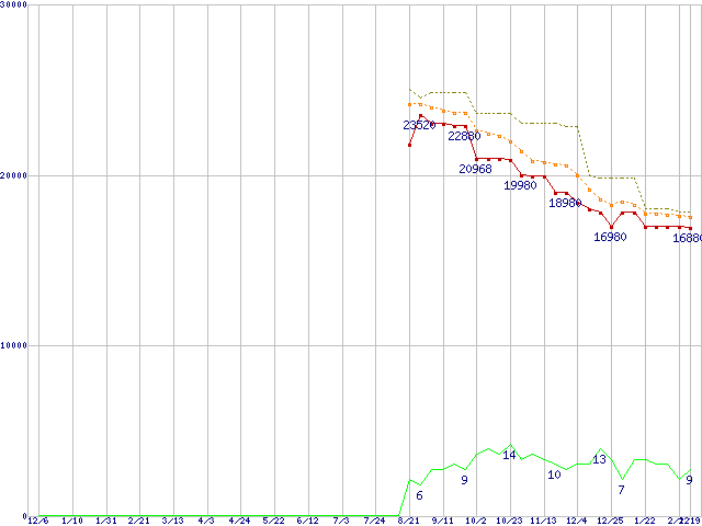 | WD1500HLFS (150.0GB)の価格推移 | | | (2007年12月6日~2009年2月19日) |