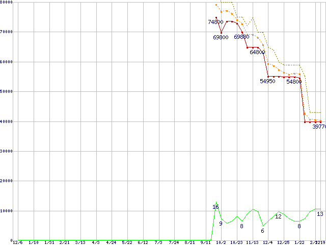 | SSDSA2MH080G1C5 (80GB,MLC)の価格推移 | | | (2007年12月6日~2009年2月19日) |