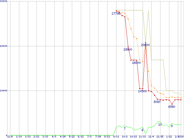 | OCZSSD2-2C30G (30GB,MLC)の価格推移 | | | (2007年12月6日~2009年2月19日) |
