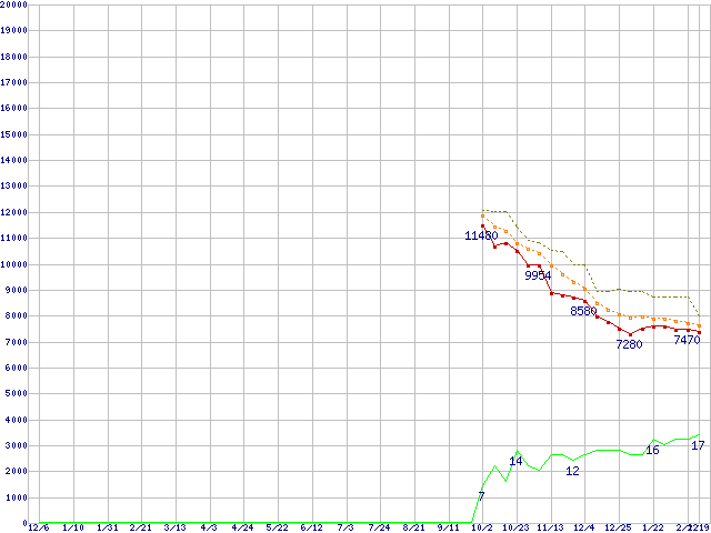 | WD10EADS (1TB,32MB)の価格推移 | | | (2007年12月6日~2009年2月19日) |