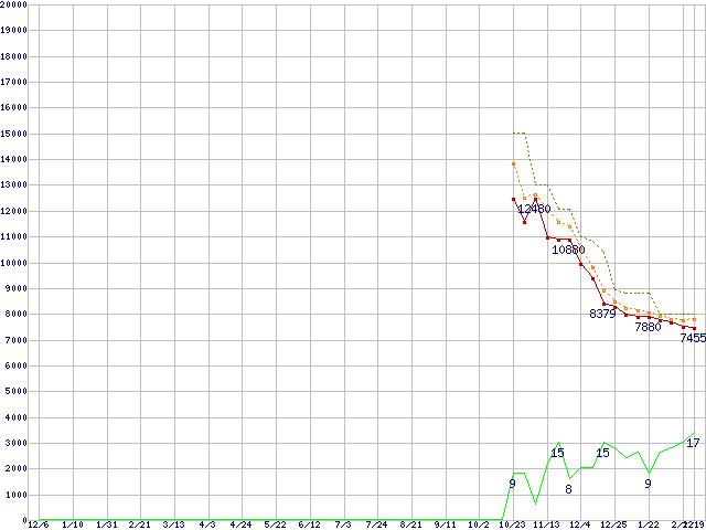 | HDT721010SLA360 (1TB,16MB)の価格推移 | | | (2007年12月6日~2009年2月19日) |