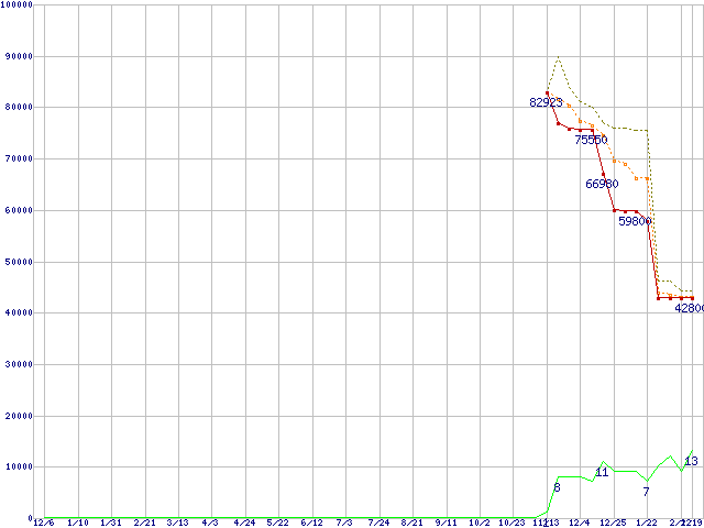 | SSDSA2SH032G1 (32GB,SLC)の価格推移 | | | (2007年12月6日~2009年2月19日) |