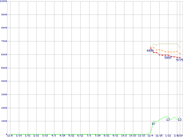 | HDT721064SLA360 (640GB,16MB)の価格推移 | | | (2007年12月6日~2009年2月19日) |