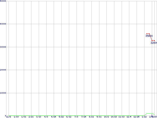 ※このグラフは過去のデータも税率5%相当に調整した税込み相当額のグラフです。 税率変更や、総額表示方式導入(2004年4月)の影響は除いています。 | | | ●凡例 | 最安値 (点線部は販売店未確認 または未調査) | 平均値 | 最高値 | ショップ数 |