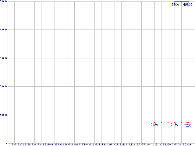 | XPG SSD 2.5" (SSD,2.5インチ,リード170MB/s・ライト100MB/s)の最安値推移 | | | (2008年8月7日~2009年2月19日) |
