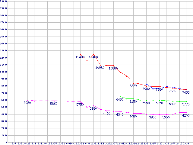 Deskstar P7K500 (7200rpm,3Gb/s)の最安値推移
