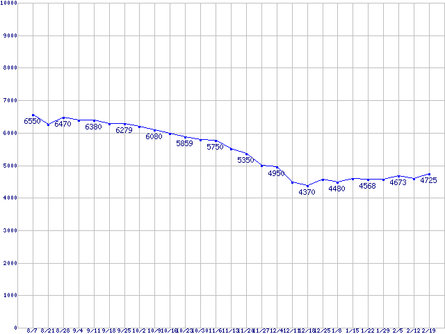Deskstar P7K500 (7200rpm,3Gb/s)の最安値推移