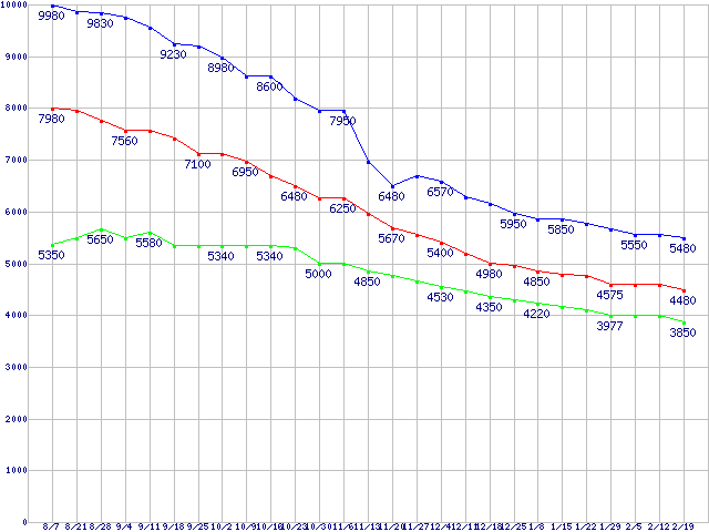 Travelstar 5K500.B (5400rpm,3Gb/s,2.5インチ)の最安値推移