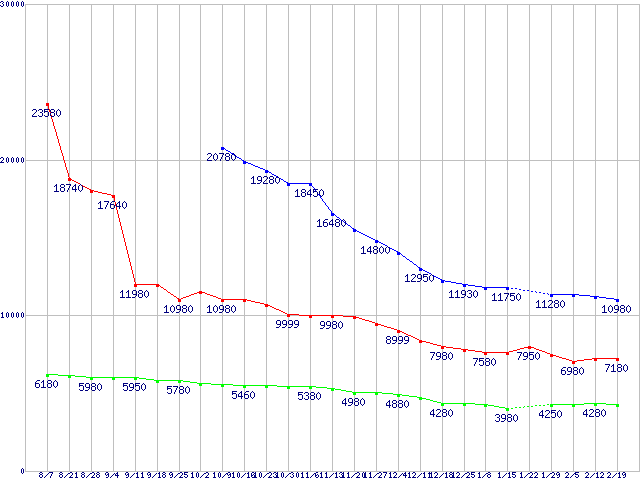 Barracuda 7200.12 (7200rpm,3Gb/s)の最安値推移