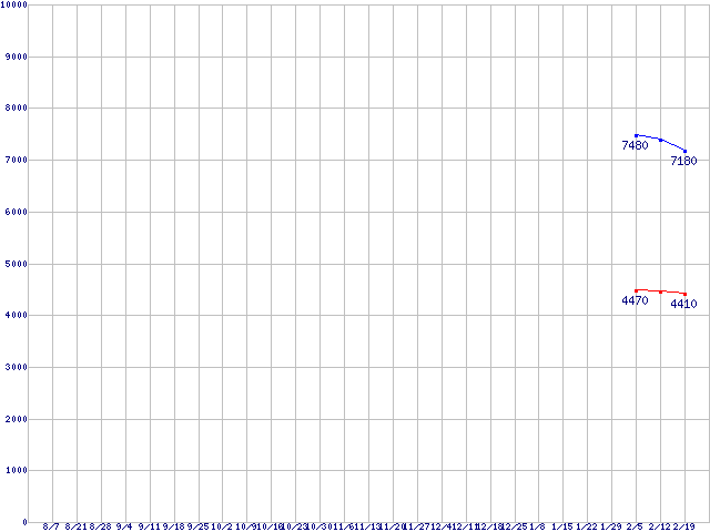 WD Scorpio Blue (5400rpm,3Gb/s,2.5インチ)の最安値推移