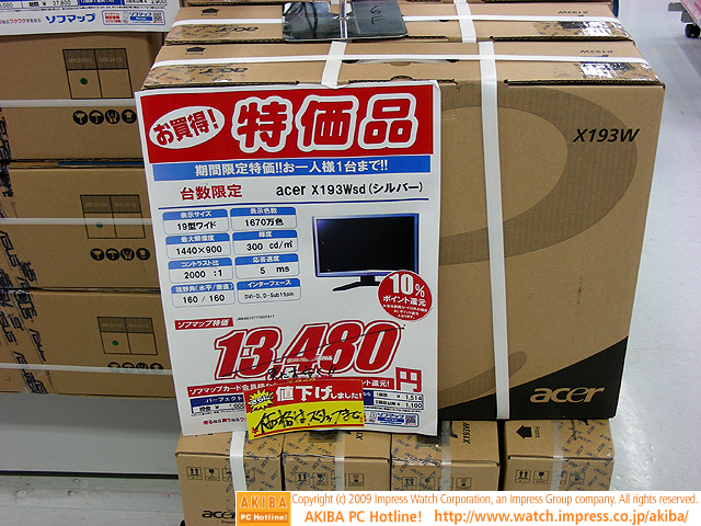 19インチワイド液晶が特価で1万円割れに、個数限定で翌日完売
