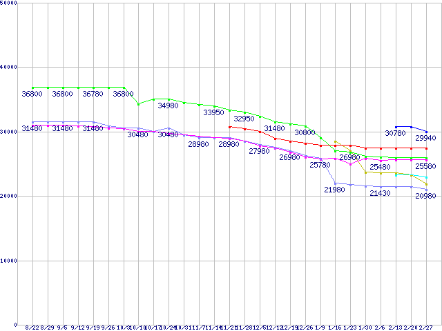 CPU主要製品(最安値3万円~6万円未満)の最安値推移