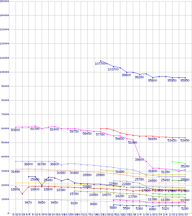 | Intel系CPUの最安値推移 | | | (2008年8月22日~2009年2月27日) |