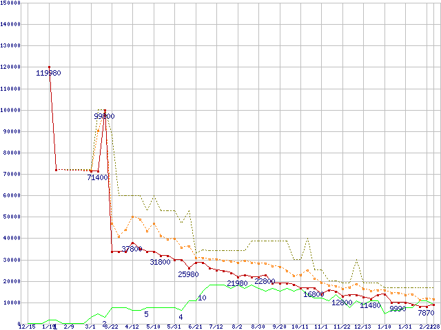 メモリ主要製品の最安値推移