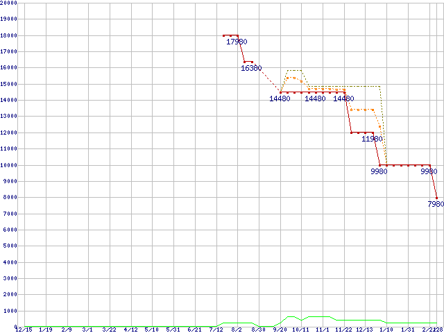 メモリ主要製品の最安値推移