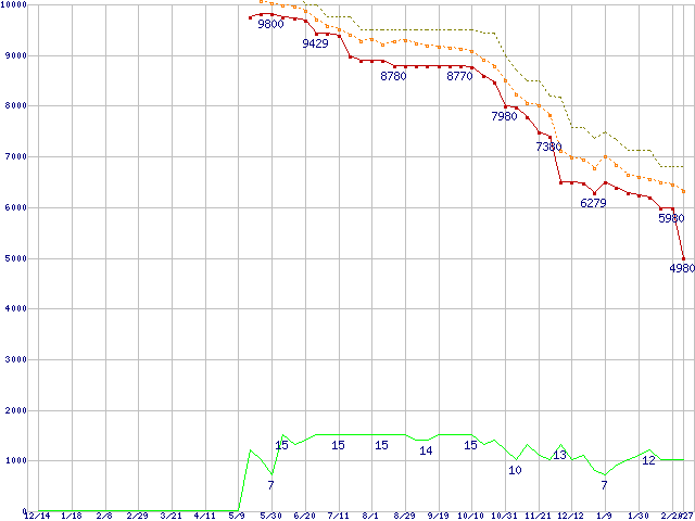| Athlon X2 4850e (2.5GHz,L2 512KB×2)の価格推移 | | | (2007年12月14日~2009年2月27日) |