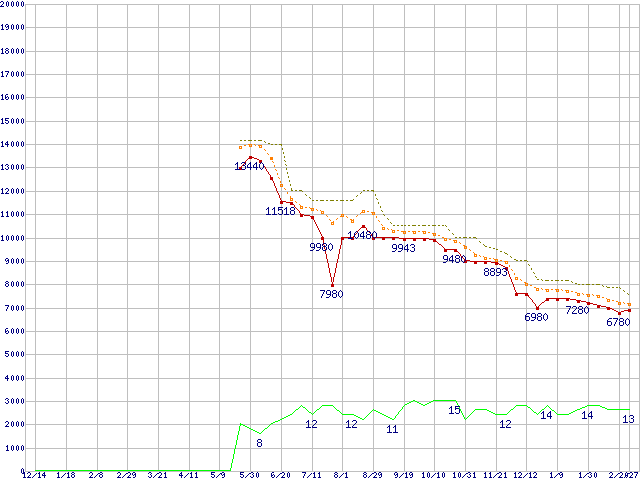 | Athlon X2 5600 (2.9GHz,L2 512KB×2)の価格推移 | | | (2007年12月14日~2009年2月27日) |
