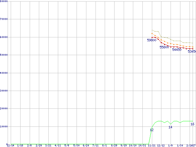 | Core i7-940 (2.93GHz)の価格推移 | | | (2007年12月14日~2009年2月27日) |