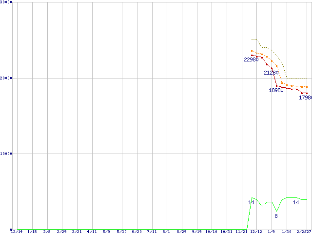 | Core 2 Quad Q8300 (2.5GHz,L2 2MB×2)の価格推移 | | | (2007年12月14日~2009年2月27日) |