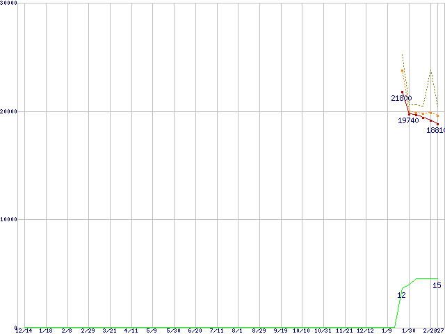 | Phenom II X4 920 (2.8GHz,L2 512KB×4,L3 6MB)の価格推移 | | | (2007年12月14日~2009年2月27日) |