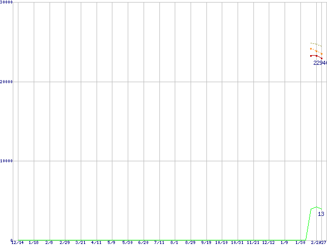 | Core 2 Quad Q8200S (2.33GHz,L2 2MB×2)の価格推移 | | | (2007年12月14日~2009年2月27日) |