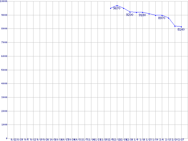 | Socket AM2 (HyperTransport 3.0,Triple Core,TDP 65W)の最安値推移 | | | (2008年8月22日~2009年2月27日) |