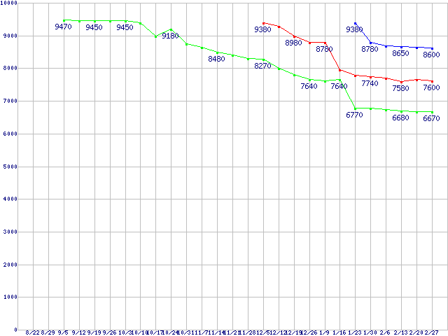 LGA775 (FSB 1066MHz,Dual Core,TDP 65W)の最安値推移
