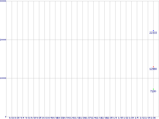 | SSD J (SSD,3Gb/s,2.5インチ,リード155MB/s・ライト95MB/s)の最安値推移 | | | (2008年8月21日~2009年2月26日) |