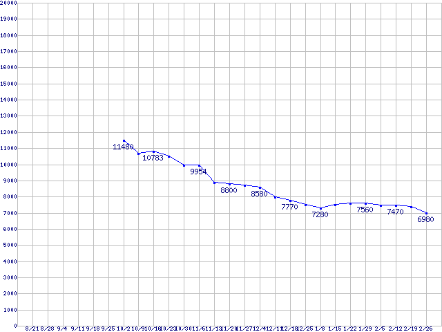 WD Caviar Blue (7200rpm,3Gb/s,16MB)の最安値推移