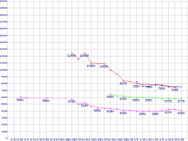 Deskstar P7K500 (7200rpm,3Gb/s)の最安値推移
