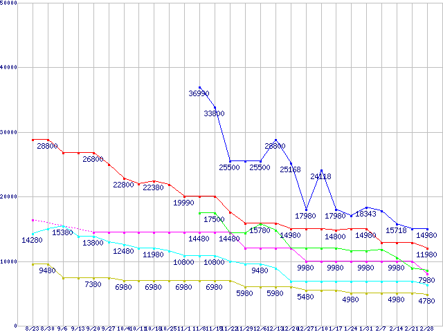 PC2-6400(DDR2-800) DDR2 SDRAM DIMMの最安値推移