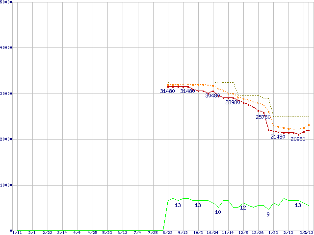 | Core 2 Quad Q9400 (2.66GHz,L2 3MB×2)の価格推移 | | | (2008年1月11日~2009年3月13日) |