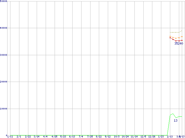 | Core 2 Quad Q9550S (2.83GHz,L2 6MB×2)の価格推移 | | | (2008年1月11日~2009年3月13日) |