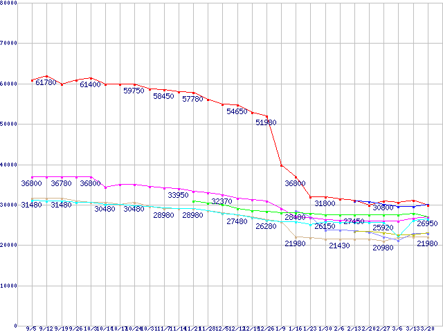 CPU主要製品(最安値3万円~6万円未満)の最安値推移
