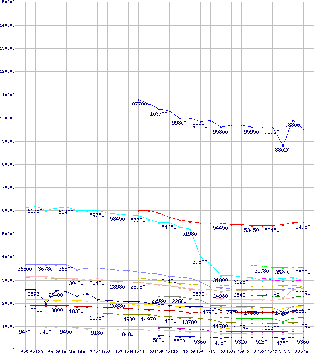 ※製品名をクリックすると個別のグラフを表示します ※点線部は販売店が確認できなかった、または調査データがないことを示します |