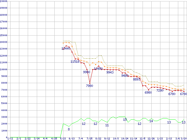 | Athlon X2 5600 (2.9GHz,L2 512KB×2)の価格推移 | | | (2008年1月11日~2009年3月20日) |