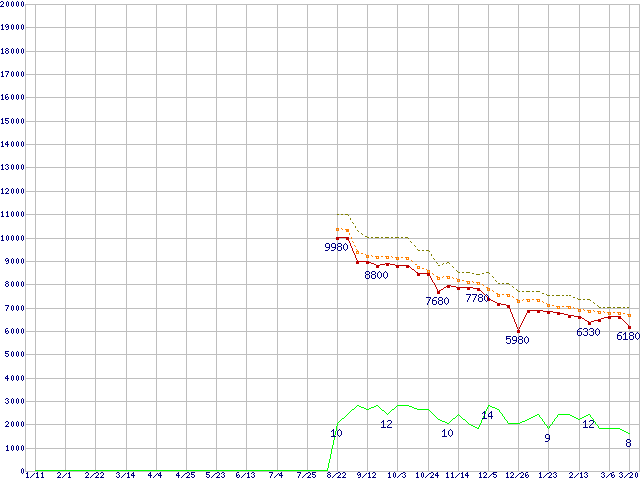 | Athlon X2 5400 Black Edition (2.8GHz,L2 512KB×2)の価格推移 | | | (2008年1月11日~2009年3月20日) |