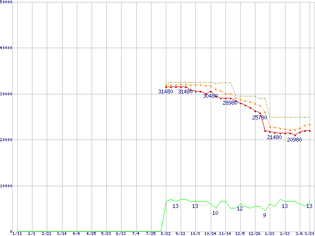 | Core 2 Quad Q9400 (2.66GHz,L2 3MB×2)の価格推移 | | | (2008年1月11日~2009年3月20日) |