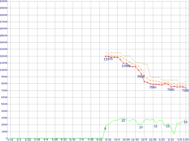 | Athlon X2 6000+ (3.1GHz,L2 512KB×2)の価格推移 | | | (2008年1月11日~2009年3月20日) |
