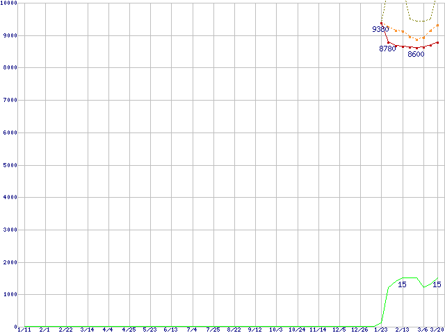 | Pentium Dual-Core E5400 (2.7GHz,L2 2MB)の価格推移 | | | (2008年1月11日~2009年3月20日) |